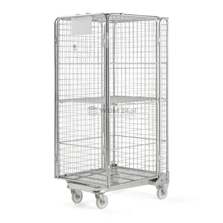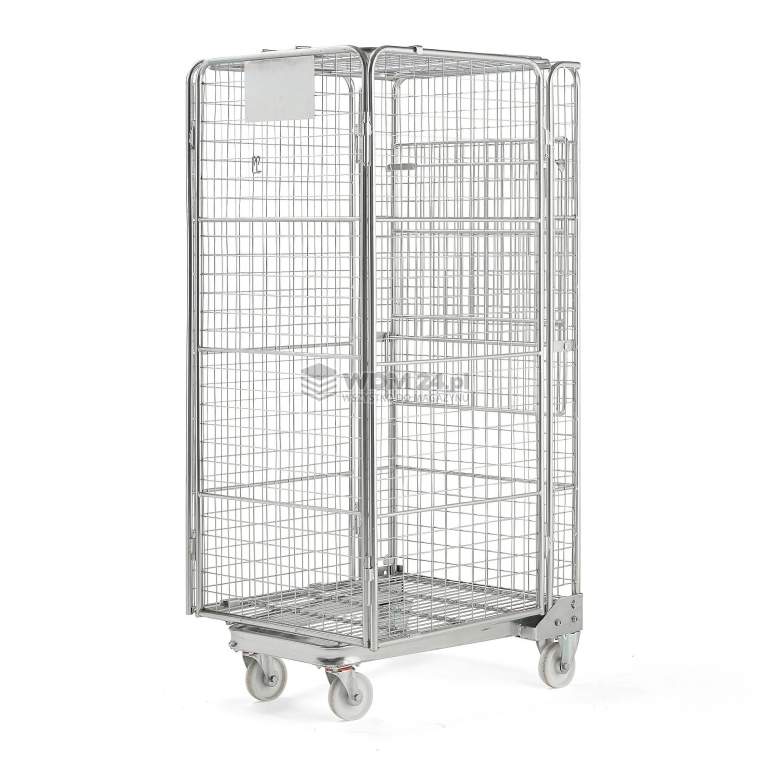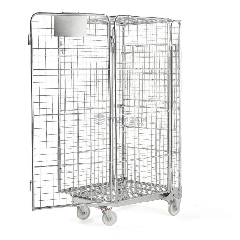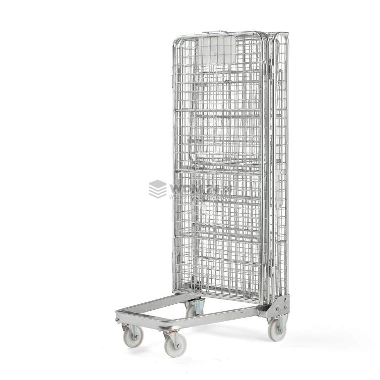 Rollkontener z czterema otwieranymi ścianami. Ładowność 400 kg. Wygodny i funkcjonalny rollkontener, doskonały do transportu dużych paczek, skrzynek i innych wielkogabarytowych towarów. Wszystkie cztery ściany można otworzyć, co zapewnia doskonały dostęp do zawartości. Możliwość składania i układania w stos zapewnia sprawny transport i przechowywanie wielu rollkontenerów jednocześnie. Rollkontener jest wykonany z ocynkowanej siatki stalowej.