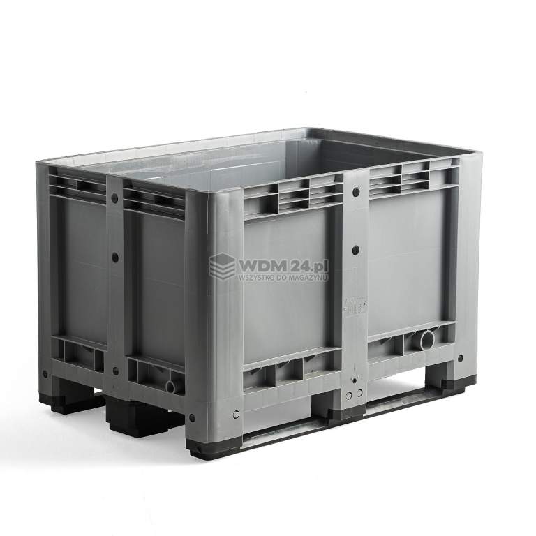 Skrzynia paletowa na suche i mokre towary. Przystosowana do transportu wózkami paletowymi. Produkt odporny na uderzenia, wykonany z materiałów dopuszczonych do kontaktu z żywnością. Wytrzymuje temp. od - 20˚C do +30˚C. Skrzynia paletowa z solidnymi ścianami do bezpiecznego transportu i przechowywania towarów.