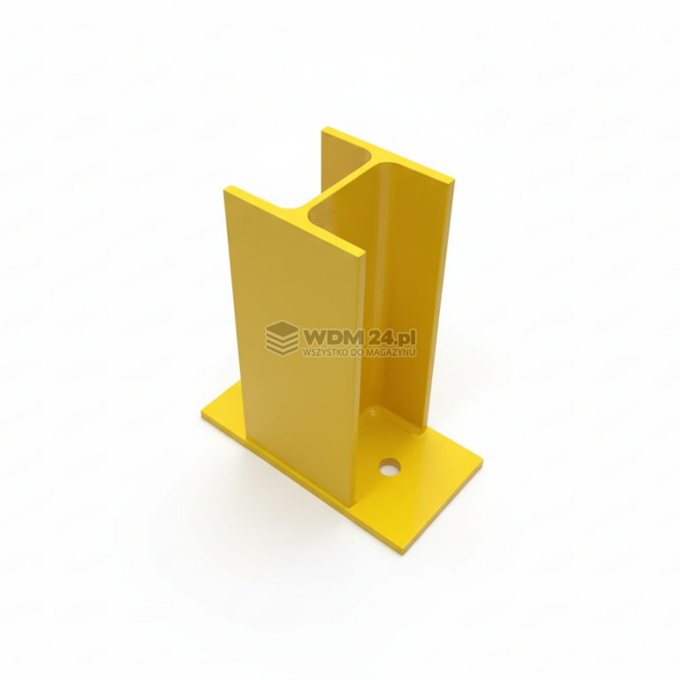 Słupek mocuje się czterema kotwami do posadzki, które należy osobno zakupić. Produkt zabezpieczono malowaniem proszkowym - farba kolor RAL1007.