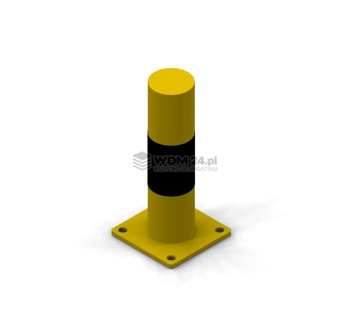 Stalowy słupek ochronny w kolorach ostrzegawczych, BHP. Malowany proszkowo w kolorze żółtym (RAL 1023) jest oklejany czarną taśmą. Słupek szeroko stosowany jest do zabezpieczania ciągów komunikacyjnych w halach magazynowych i produkcyjnych, także jako zabezpiecznie bram wjazdowych, doków, naroży ścian, elementów instalacji gazowych lub wod.-kan. itp.