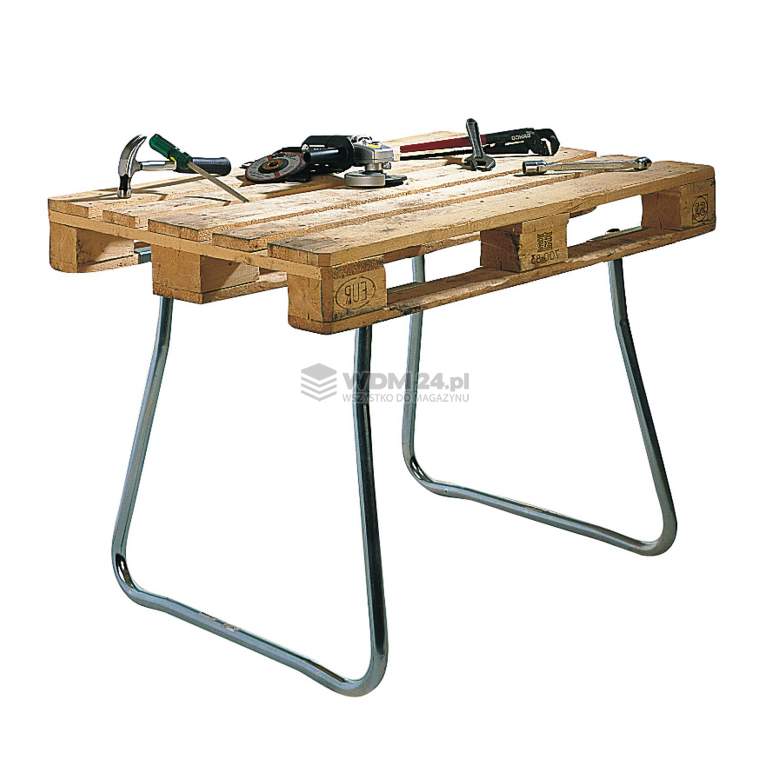 Stelaż na palety z galwanizowanych rur stalowych. Dodaj paletę i stwórz tymczasowe stanowisko robocze. Jednostka sprzedaży 2 szt. Zbuduj stabilny stół do pracy w 30 sekund! Umieść paletę na nogach i stwórz stół, którego można używać wewnątrz i na zewnątrz. Można na nim stawać.