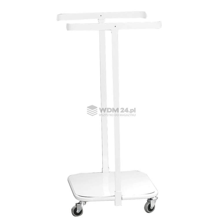 Mobilny stojak na worki na śmieci. Posiada cztery koła, solidną podstawę i dwa sprężynowe ramiona. Pokrywa i worki na śmieci sprzedawane oddzielnie. Praktyczny stojak na worek na śmieci wyposażony w lekko toczące się koła, które ułatwiają przemieszczanie. Dwa ramiona na sprężynach utrzymują worek stabilnie w miejscu. Worek spoczywa na podstawie i łatwo go zdjąć, gdy jest pełny. Całość wykonano z blachy stalowej lakierowanej proszkowo na kolor biały. Wyposaż stojak na worki w pokrywę i ukryj zawartość, zapewniając wyższy poziom higieny. Pokrywa zapobiega rozprzestrzenianiu się nieprzyjemnych zapachów. Pokrywa sprzedawana oddzielnie.