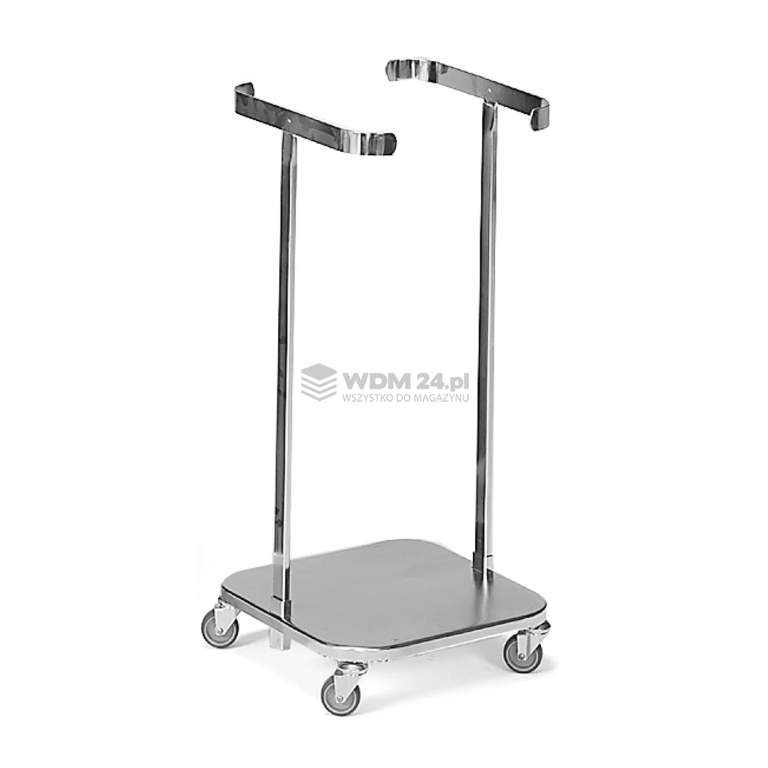 Mobilny uchwyt na worek na śmieci. Posiada cztery koła, solidną podstawę i dwa sprężynowe ramiona. Worki na śmieci są sprzedawane oddzielnie (patrz akcesoria). Praktyczny stojak na worek na śmieci wyposażony w lekko toczące się koła, które ułatwiają przemieszczanie. Dwa ramiona na sprężynach utrzymują worek stabilnie w miejscu. Worek spoczywa na podstawie i łatwo go zdjąć, gdy jest pełny. Stojak wykonano z galwanizowanej blachy stalowej.