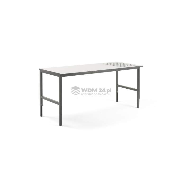 Stół posiada ręczną regulację wysokości w zakresie od 720 do 900 mm, co pozwala na precyzyjne dopasowanie poziomu roboczego do wzrostu pracownika. System CARGO jest w pełni modułowy – stanowisko można rozbudować o szafki, drążki na papier czy panele narzędziowe, tworząc spersonalizowane centrum logistyczne.