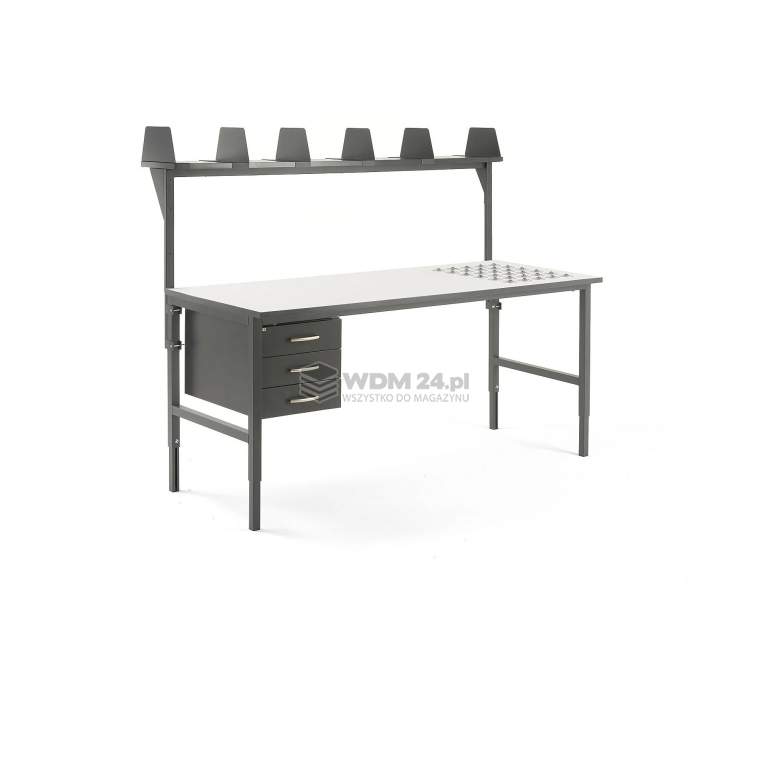 Stół do pakowania CARGO 2000x750 mm z podajnikiem kulowym, nadstawką i 3 szufladami. Biały blat HPL odporny na zarysowania, udźwig 400 kg i ergonomiczna regulacja wysokości. Idealny wybór dla wymagającej logistyki i e-commerce.