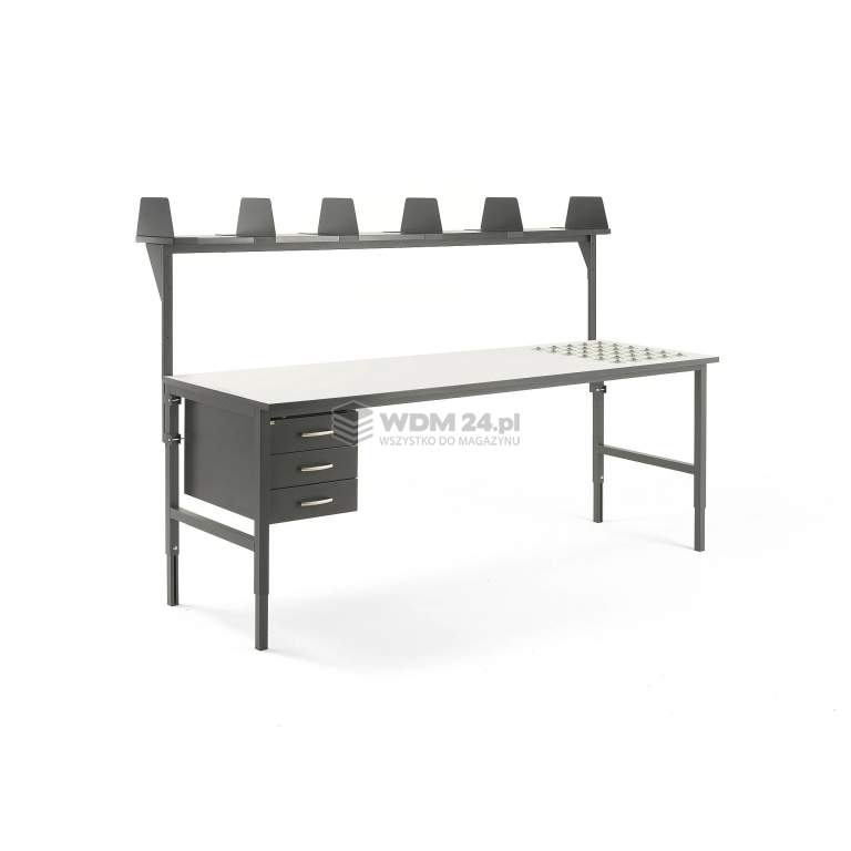 | Wyposażenie specjalne | Blat z rolkami kulowymi, nadstawka z 6 przegrodami, kontenerek (3 szuflady) |