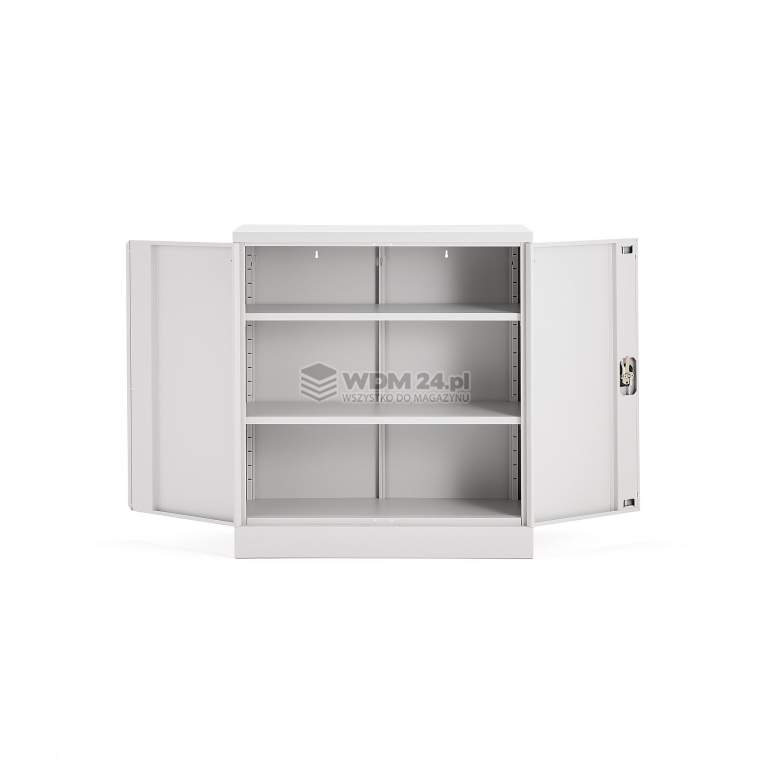 Szafa do przechowywania, którą można łatwo zmontować bez użycia narzędzi. Wyposażona w regulowane półki, uchwyt obrotowy i zamek 3-punktowy z dwoma kluczami. Pojemna szafa, która zapewnia zorganizowane i skuteczne przechowywanie. Oferuje mnóstwo miejsca na tace, pojemniki i inne przedmioty, zarówno duże, jak i małe, które chcesz bezpiecznie przechowywać. Nadaje się do magazynów i biur.