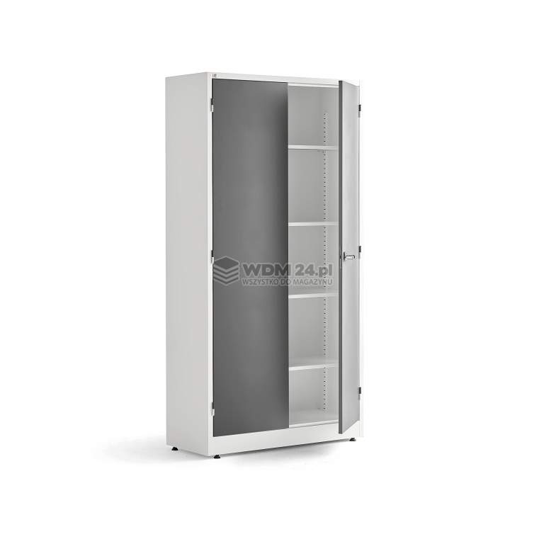 Wysokiej jakości szafa, która sprawdzi się zarówno w biurze, jak i magazynie. Szafa wyposażona w regulowane półki, regulowane stopki, klamkę obrotową oraz zamek trzypunktowy z dwoma kluczami.