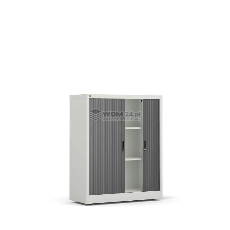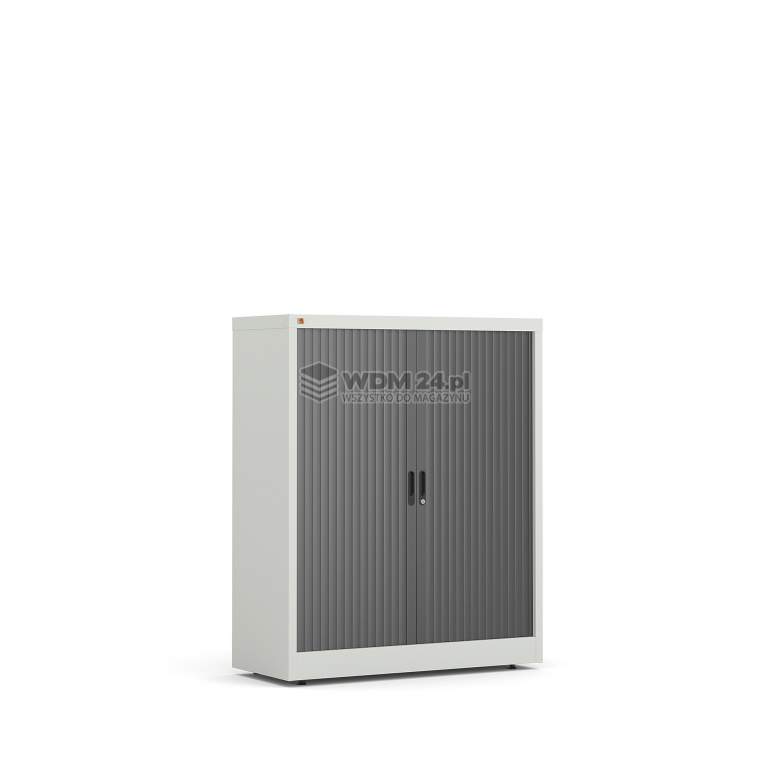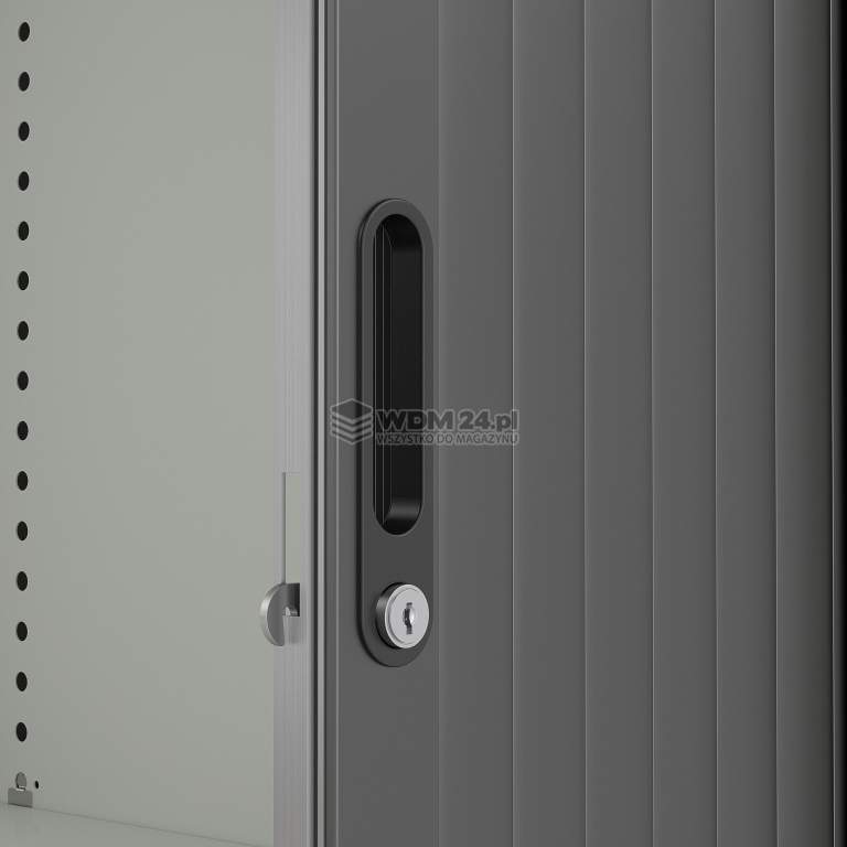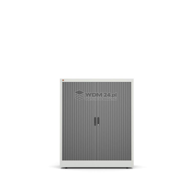 Oszczędzająca miejsce szafa z zamykanymi drzwiami żaluzjowymi. Posiada regulowane stopki (regulacja wewnątrz szafy). Uchwyty wpuszczone w drzwi. Szafa żaluzjowa to doskonały wybór do niewielkich pomieszczeń. Zajmuje niewiele miejsca. Oszczędzające miejsce drzwi zapewniają wygodę użytkowania i łatwy dostęp do przechowywanych przedmiotów.