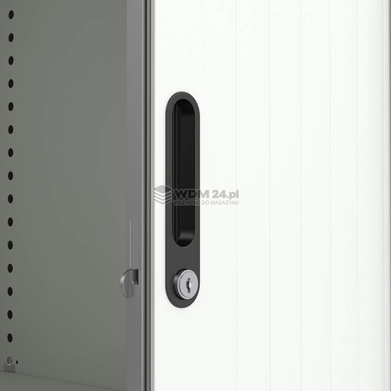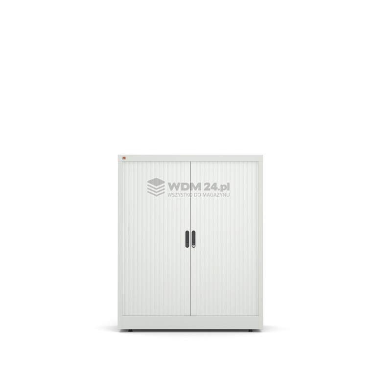 Oszczędzająca miejsce szafa z zamykanymi drzwiami żaluzjowymi. Posiada regulowane stopki (regulacja wewnątrz szafy). Uchwyty wpuszczone w drzwi. Szafa żaluzjowa to doskonały wybór do niewielkich pomieszczeń. Zajmuje niewiele miejsca. Oszczędzające miejsce drzwi zapewniają wygodę użytkowania i łatwy dostęp do przechowywanych przedmiotów.