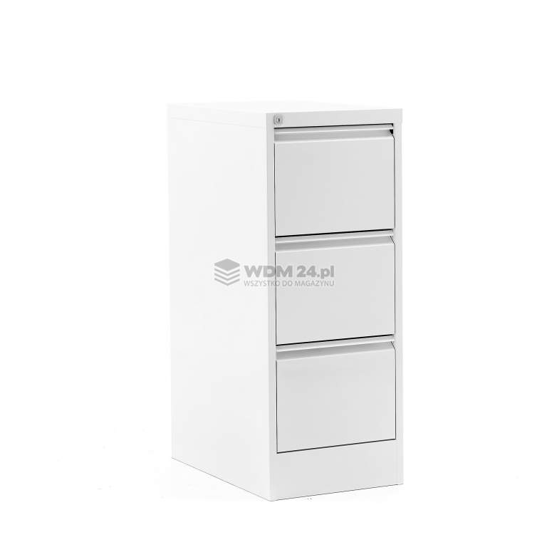 Szafa posiada trzy duże szuflady na teczki zawieszane w formacie A4. Każda szuflada pomieści około 65 teczek w formacie A4.