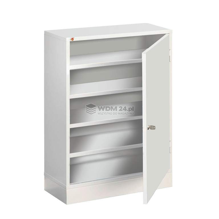 Niezwykle płytka zamykana szafka wyposażona w regulowane półki. Można wyposażyć w podstawę (dostępna jako wyposażenie dodatkowe). Praktyczna szafka z blachy odpowiednia do biur, magazynów lub warsztatów. Nasza szafka jest niezwykle płytka, co sprawia, że nadaje się do ciasnych pomieszczeń. Szafka może służyć jako mebel wolnostojący z podstawą (cokołem) lub bez niego. Cokół dostępny jako wyposażenie dodatkowe. Można także ustawiać szafki jedna na drugiej.