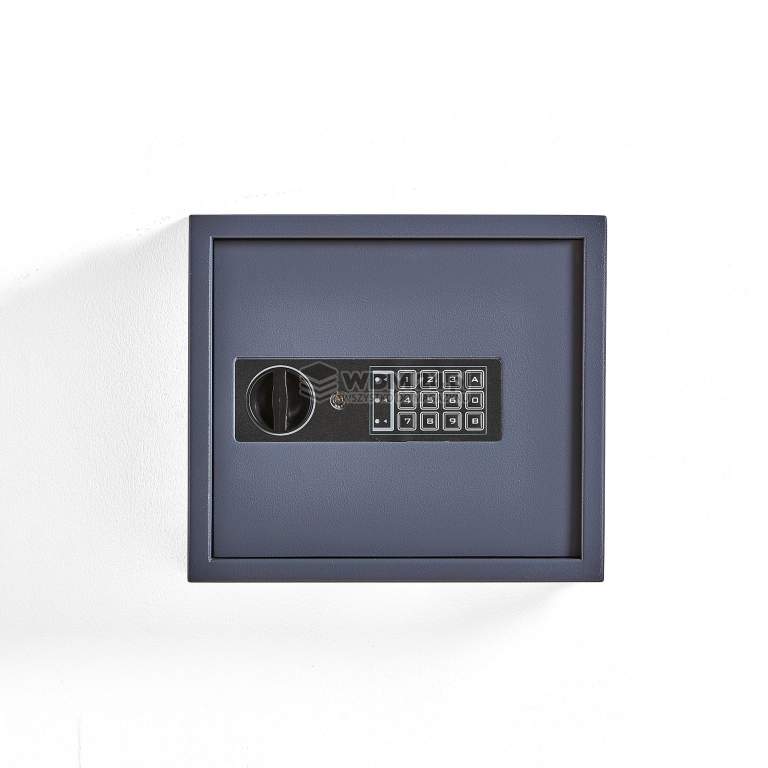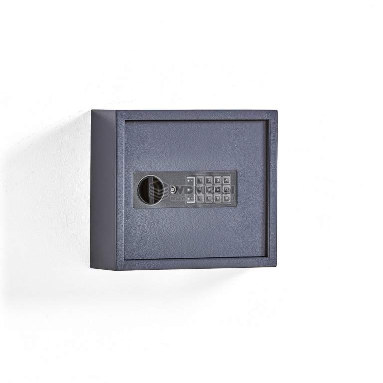 Szafka zapewnia pracownikom dostęp do kluczy i umożliwia przechowywanie wszystkich kluczy w miejscu pracy w jednej lokalizacji. Wytrzymała szafka, która zapewnia bezpieczeństwo i dobrą organizację firmowych kluczy. Korpus szafy wykonany jest z blachy stalowej o grubości 3 mm, a drzwi z blachy stalowej o grubości 6 mm. Drzwi zabezpieczone zostały dwoma stalowymi bolcami ryglującymi. Posiadają również niewielką wbudowaną klamkę obrotową. Aby zapewnić maksymalne bezpieczeństwo, szafkę należy przykręcić do ściany. W zestawie dwa elementy dystansowe do montażu szafki na betonowej ścianie. Wyposażono w elektroniczny zamek szyfrowy z wyświetlaczem LCD z możliwością zaprogramowania 6-cyfrowego kodu dostępu. W zestawie również zamek na klucz (klucz w zestawie) do awaryjnego otwierania szafki. Elektroniczny zamek szyfrowy zasilany jest czterema bateriami AA (brak w zestawie).