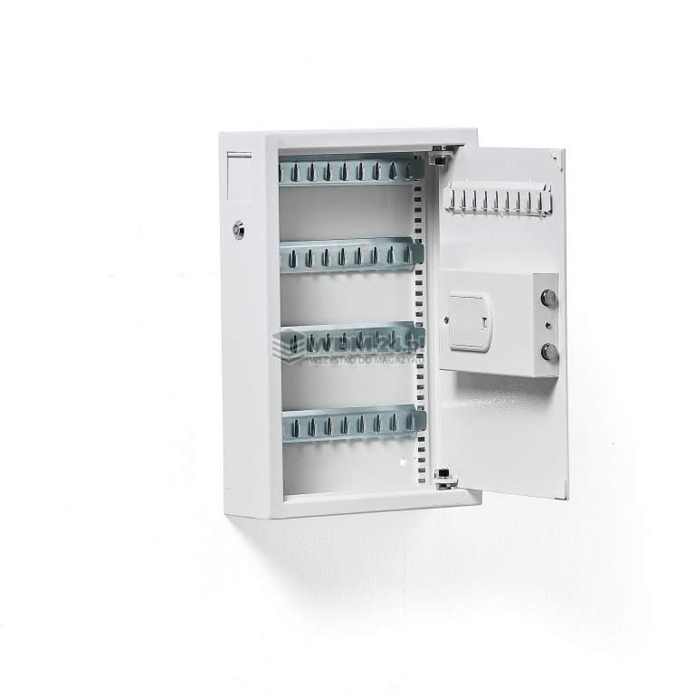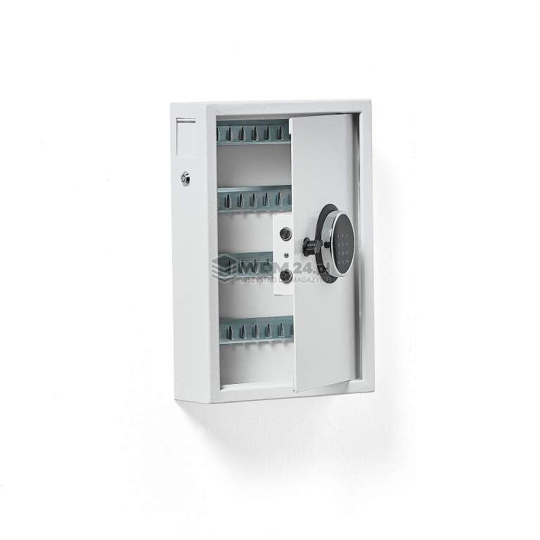 Wytrzymały sejf na klucze z elektronicznym zamkiem szyfrowym oraz otworem wrzutowym. Sejf na klucze zapewnia dobrą organizację i bezpieczeństwo przechowywanych kluczy do pomieszczeń firmowych. Przygotowany do montażu na ścianie. Sejf pozwala przechowywać wszystkie klucze do pomieszczeń firmowych bezpiecznie w jednym miejscu. Dzięki zamkowi szyfrowemu dostęp do kluczy będą mieli jedynie wyznaczeni pracownicy. Nasz mocny i wytrzymały sejf zapewnia bezpieczeństwo i porządek wśród firmowych kluczy.