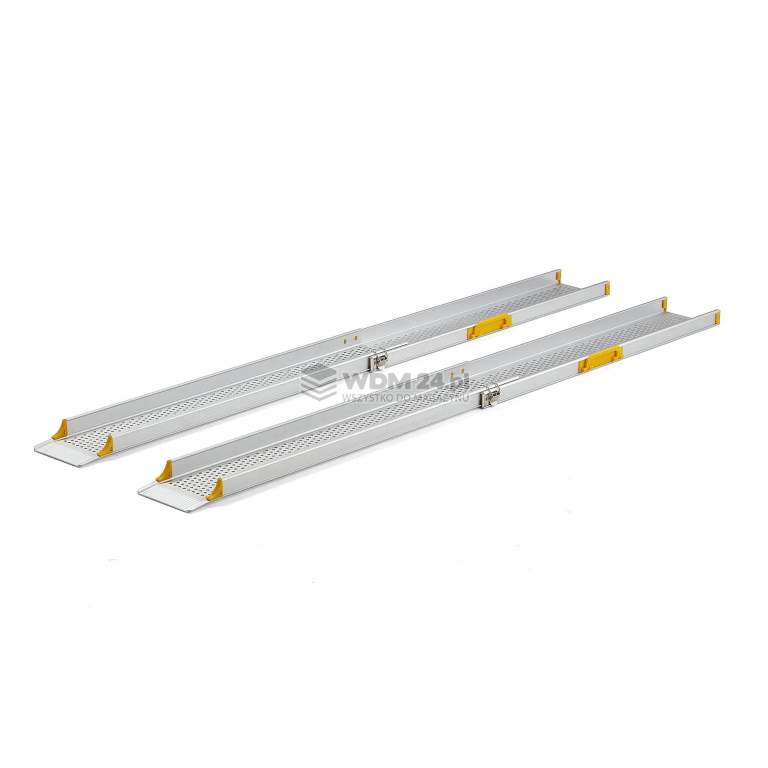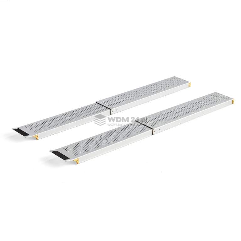 Teleskopowa rampa najazdowa, której długość można regulować. Idealne rozwiązanie do transportu sprzętu i maszyn o wadze w przypadku różnicy poziomów. Rampa jest antypoślizgowa i posiada zagiętą górną krawędź. Trwała, teleskopowa rampa wykonana z aluminium z możliwością rozłożenia dla maksymalnej elastyczności. Wygodna opcja, gdy potrzebujesz rampy najazdowej w pomieszczeniach o różnych poziomach podłogi. Lekka konstrukcja zapewnia wygodne użytkowanie podczas załadunku maszyn na przyczepy itp. Rozstaw można dowolnie regulować.