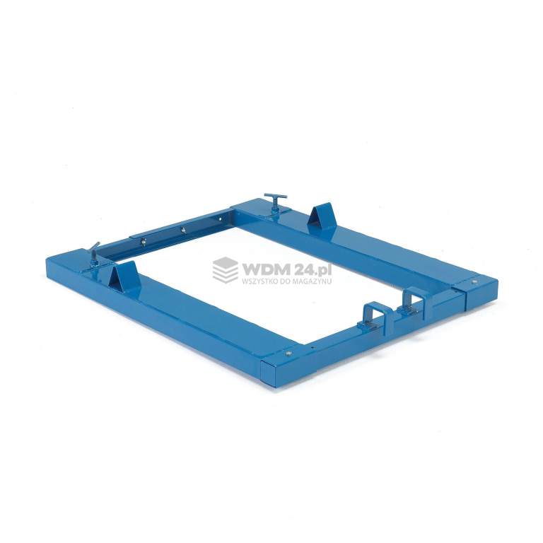 Uchwyt na widły do opróżniania plastikowych pojemników na śmieci. Obsługuje kosze od 40 do 400 litrów. Ułatwia wyładunek odpadów do kontenera przy użyciu wózka widłowego.