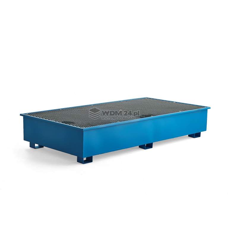 Wanna wychwytowa o poj 1200l do kontenera IBC. Trwała, w pełni spawana wanna wychwytowa do przechowywania i dozowania chemikaliów przy użyciu kontenerów IBC. Stal malowana proszkowo zapewnia niezwykłą wytrzymałość powierzchni i trwałe wykończenie. Wannę wyposażono w wyjmowaną kratkę ze stali galwanizowanej, która wychwytuje wycieki. Wannę łatwo podnieść i przewieźć przy pomocy wózka widłowego. Pojemność produktu to aż 1200 L, a maksymalne dopuszczalne obciążenie wynosi 2400 kg.