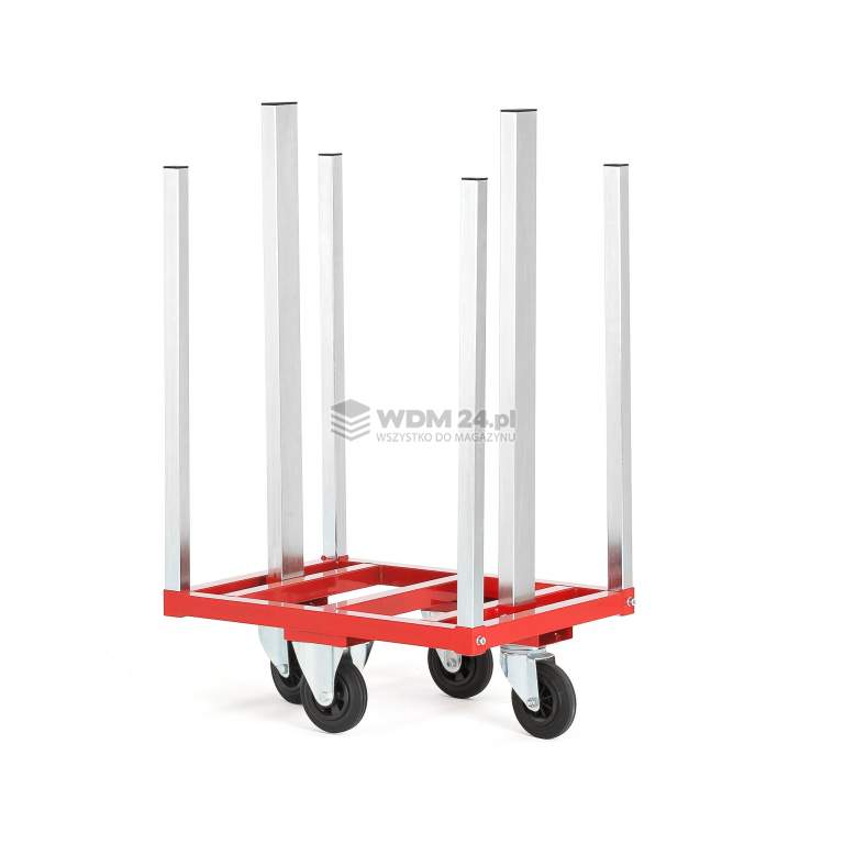 Wózek o trwałej konstrukcji ułatwiający obsługę i przechowywanie kołnierzy paletowych. Wózek posiada dwa koła stałe i dwa skrętne. Koła stałe znajdują się na dłuższym boku dla łatwiejszej obsługi. Nasz wózek zapewnia łatwą i skuteczną obsługę kołnierzy paletowych w różnych rozmiarach. Wózek zaprojektowano do transportu i przechowywania kołnierzy paletowych w stanie złożoym (mieści maks. 36 sztuk).