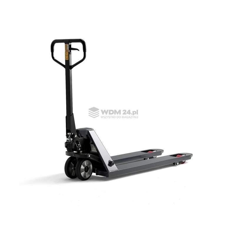 Wózek paletowy z funkcją szybkiego podnoszenia i ergonomicznym uchwytem. Wózek paletowy oferuje duży kąt skrętu, co znacznie ułatwia manewrowanie. Praktyczny wózek paletowy z funkcją szybkiego podnoszenia Quicklift, która sprawia, że jest niezwykle wygodny w obsłudze. Widły dosięgają palety przy pierwszym skoku pompy, przy drugim skoku pompy unoszą paletę. Automatyczny powrót do normalnej prędkości podnoszenia przy obciążeniu większym niż 150 kg. Szeroki promień skrętu ułatwia manewrowanie wózkiem. Rolki frontowe ułatwiają załadunek i rozładunek palet. Wózek paletowy posiada oznaczenie CE.