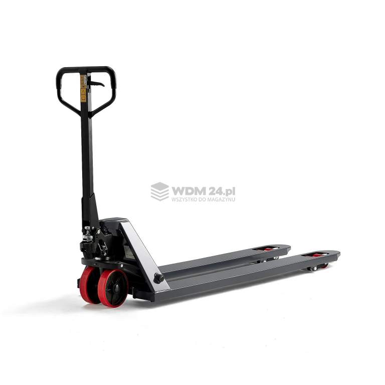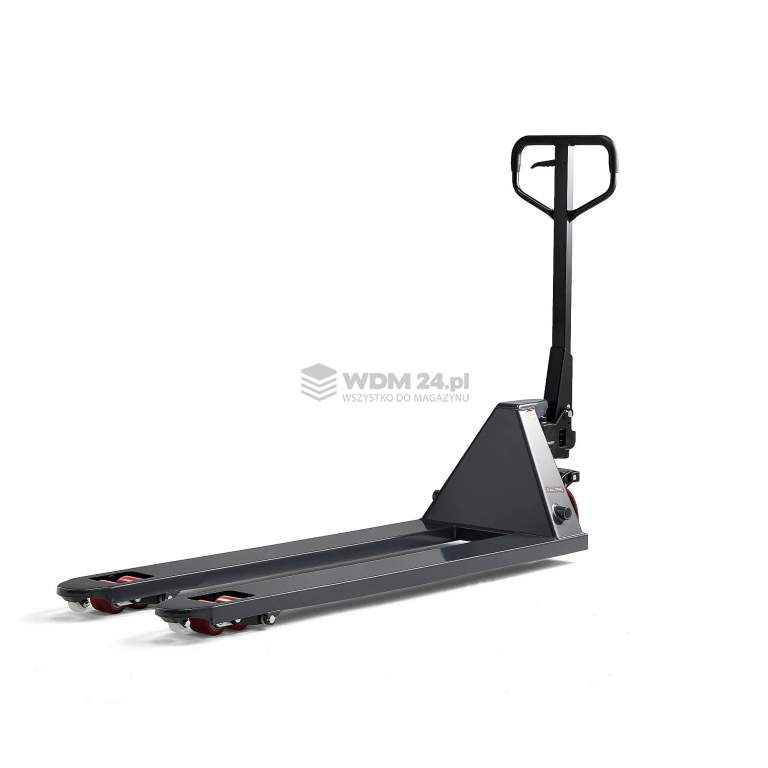 Nasz wózek został wykonany z wysokiej jakości stali. Można go płynnie i płynnie opuszczać nawet przy maksymalnym obciążeniu. Tuleje i smarowniczki sprawiają, że ten wózek paletowy jest łatwy w konserwacji i serwisowaniu. Solidny i ergonomiczny uchwyt pokryty gumą zapewnia mocniejszy, wygodniejszy i pewniejszy chwyt. Wózek paletowy posiada oznaczenie CE.