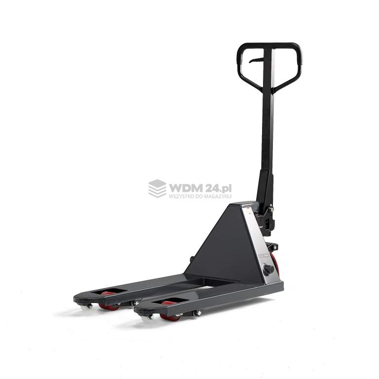 Wysokiej jakości, łatwy w manewrowaniu i konserwacji wózek paletowy. Wózek paletowy posiada gumowany uchwyt, dzięki któremu można go płynnie i łatwo opuszczać. Promień skrętu 230˚. Praktyczny wózek paletowy z funkcją szybkiego podnoszenia Quicklift, która sprawia, że jest niezwykle wygodny w obsłudze. Widły dosięgają palety przy pierwszym skoku pompy, przy drugim skoku pompy unoszą paletę. Automatyczny powrót do normalnej prędkości podnoszenia przy obciążeniu większym niż 150 kg.