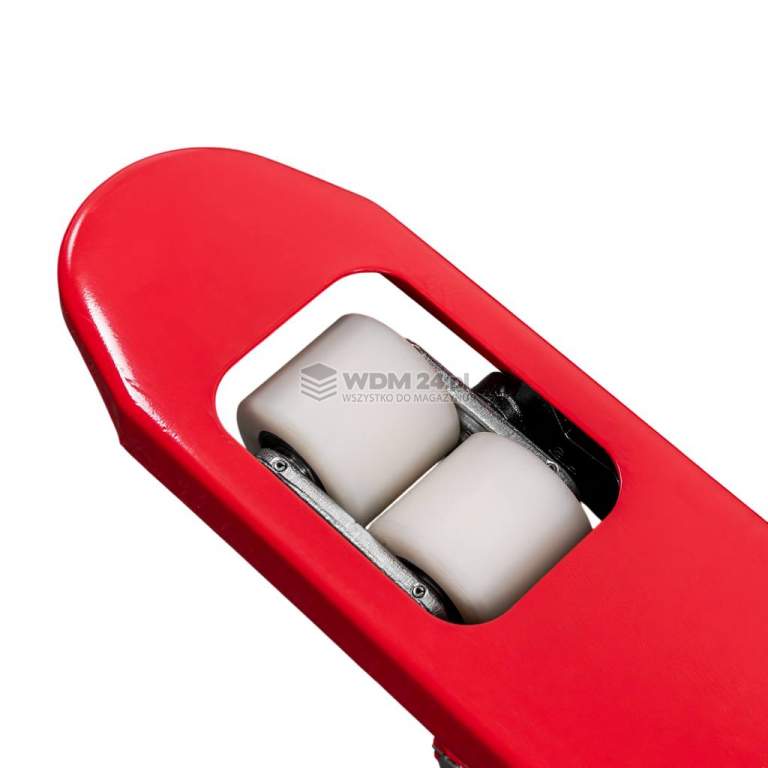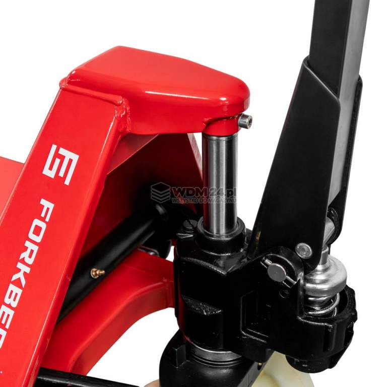 Wózek paletowy FORKBERG L-1150 to niezawodne rozwiązanie dla profesjonalistów, którzy szukają trwałego i precyzyjnego narzędzia do codziennej pracy. Ten ręczny paleciak został zaprojektowany z myślą o intensywnej eksploatacji – posiada wzmocnione podwozie malowane w kolorze RAL3028 z grubej stali 2,8 mm, co gwarantuje długą żywotność i odporność na uszkodzenia mechaniczne. Wyposażony w precyzyjny układ hydrauliczny i ergonomiczny uchwyt typu A, zapewnia komfortową i bezpieczną obsługę nawet przy pełnym załadunku do 2500 kg. Z długością wideł 115 cm i rozstawem 54 cm, model ten jest perfekcyjnie dopasowany do standardowych europalet, umożliwiając szybki i wygodny transport towarów. Nylonowe koła prowadzące i wytrzymałe rolki PU gwarantują cichą i płynną jazdę, bez ryzyka uszkodzenia posadzki.
