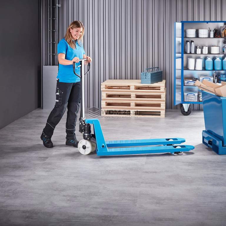 Bezpieczny i funkcjonalny wózek paletowy, który jest łatwy w manewrowaniu. Z funkcją szybkiego podnoszenia (Quicklift), rolkami frontowymi i uchwytem pokrytym gumą. Wysokiej jakości wózek paletowy, który usprawnia pracę i znacznie ułatwia obsługę ciężkich towarów. Funkcja szybkiego podnoszenia (Quicklift) sprawia, że wystarczą trzy ruchy pompy, aby można było rozpocząć transport. Rolki frontowe ułatwiają załadunek i rozładunek palet. Solidny uchwyt pokryty gumą zapewnia mocniejszy, wygodniejszy i pewniejszy chwyt. Wózek posiada oznaczenie CE.