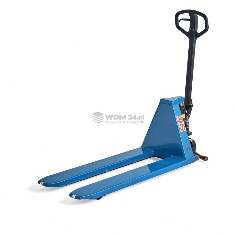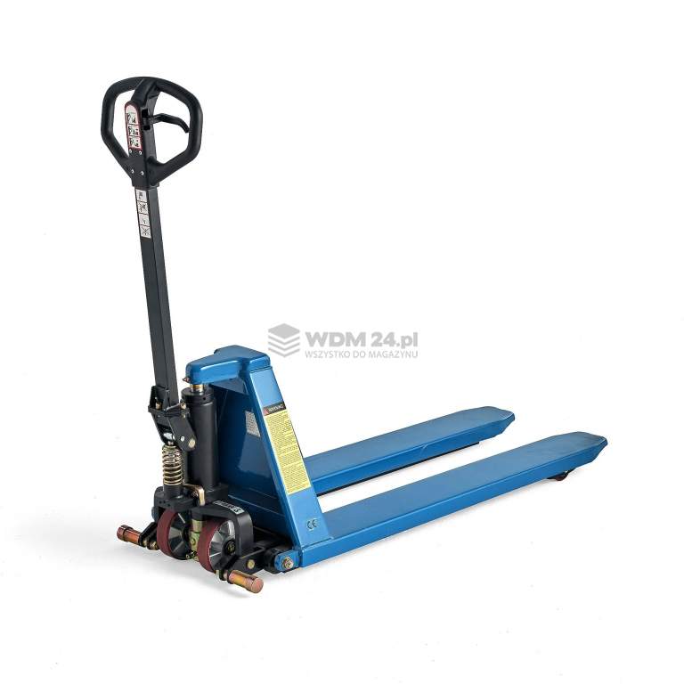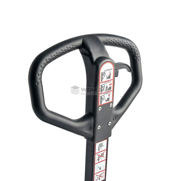Maks. obciążenie 1000 kg, dzięki czemu sprzęt nadaje się do prac związanych z podnoszeniem na większości stanowisk pracy. Wózek paletowy jest wyposażony w gumowany, ergonomiczny uchwyt zapewniający bardzo pewny i wygodny chwyt.