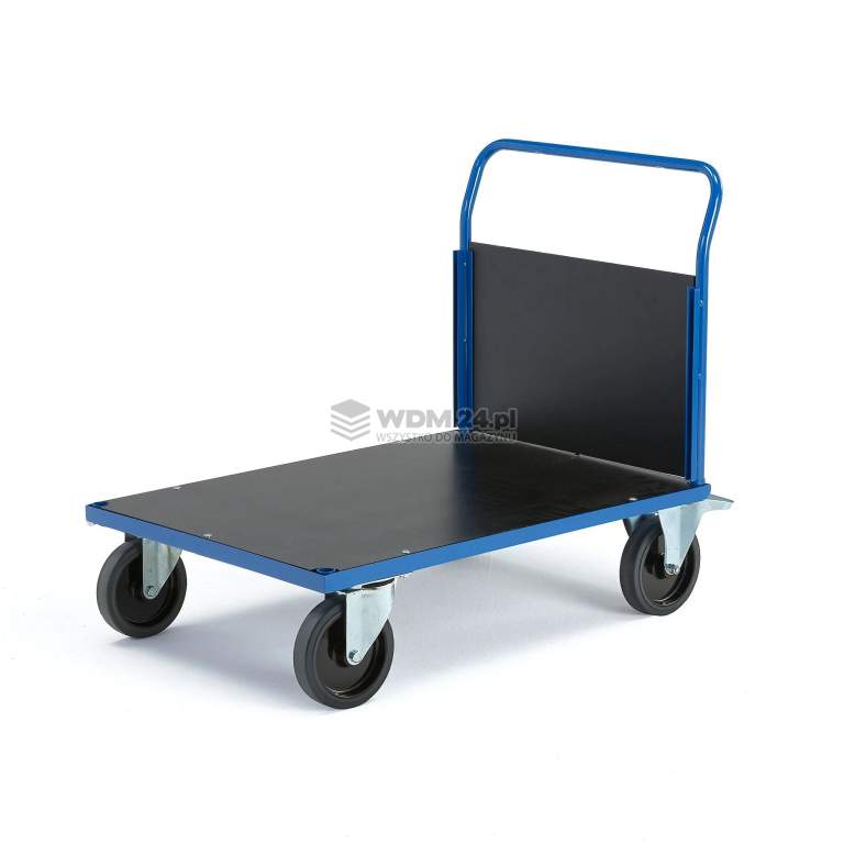 Wózek platformowy o wytrzymałej konstrukcji z praktyczną ramą, która służy też jako uchwyt do prowadzenia. Wyposażony w platformę z wytrzymałej płyty MDF i zdejmowaną ramę stabilizującą ładunek podczas transportu. Wózek platformowy z trwałych rur stalowych z platformą i burtą z MDF w kolorze czarnym. Wózek idealnie nadaje się do transportu w warsztatach i magazynach. Burtę na krótszym boku łatwo zdjąć, gdy zajdzie potrzeba. Umożliwia to transport dłuższych przedmiotów.
