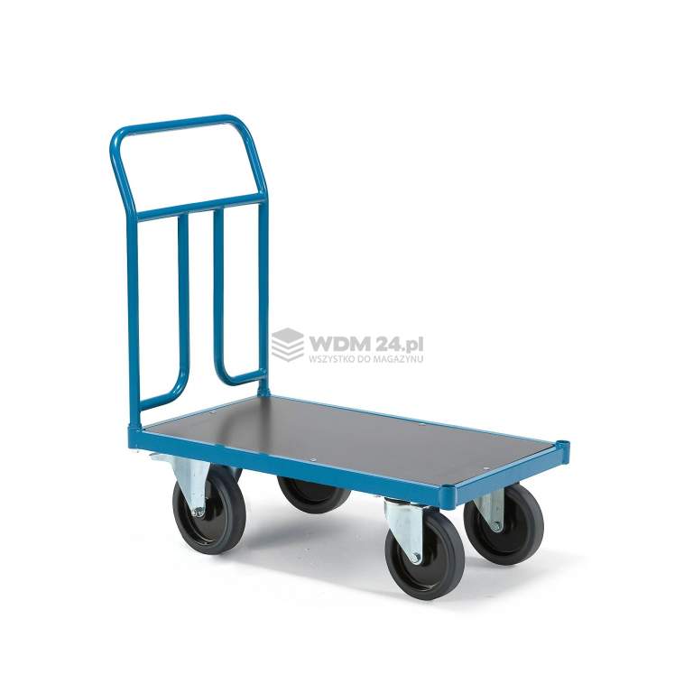 Stabilny wózek platformowy z kołami z pełnej gumy i zdejmowaną ramą końcową ze stali. Posiada wytrzymałą platformę z trwałej płyty MDF, co jest doskonałym rozwiązaniem do transportu dużych i nieporęcznych przedmiotów. Nasz wózek platformowy został wykonany z trwałej stali. Posiada pojemną platformę załadunkową. Wózek jest wyposażony w ramę, która umożliwia transport dużych przedmiotów o nieregularnych kształtach w większości środowisk firmowych. Dodatkowe panele boczne dostępne jako wyposażenie dodatkowe.