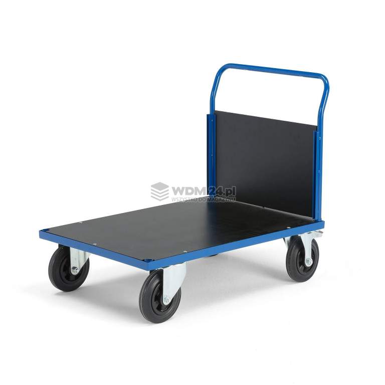 Wózek platformowy o wytrzymałej konstrukcji z praktyczną ramą, która służy też jako uchwyt do prowadzenia. Wyposażony w platformę z wytrzymałej płyty MDF i zdejmowaną ramę stabilizującą ładunek podczas transportu. Wózek platformowy z trwałych rur stalowych z platformą i burtą z MDF w kolorze czarnym. Wózek idealnie nadaje się do transportu w warsztatach i magazynach. Burtę na krótszym boku łatwo zdjąć, gdy zajdzie potrzeba. Umożliwia to transport dłuższych przedmiotów.