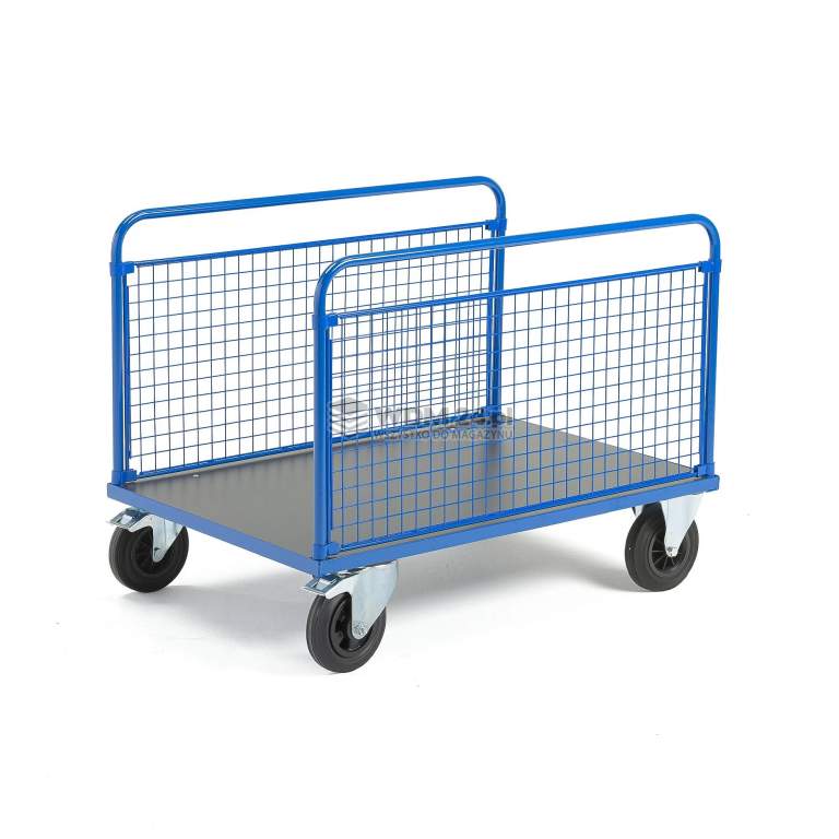 Wszechstronny wózek platformowy z wysokimi ramami końcowymi i panelami z siatki na dłuższych bokach. Platforma z wytrzymałej płyty MDF. Zdejmowane ramy i panele z siatki pozwalają łatwo dostosować wózek do potrzeb w zakresie transportu. Sprawdzi się w wielu różnych środowiskach. Trwały wózek platformowy do transportu i przechowywania w magazynach, warsztatach i innych środowiskach przemysłowych. Wózek transportowy jest także doskonałym rozwiązaniem do środowisk nieprzemysłowych, takich jak biura, centra sportowe itp. Zdejmowane panele z siatki pozwalają łatwo dostosować wózek do potrzeb w zakresie przechowywania.