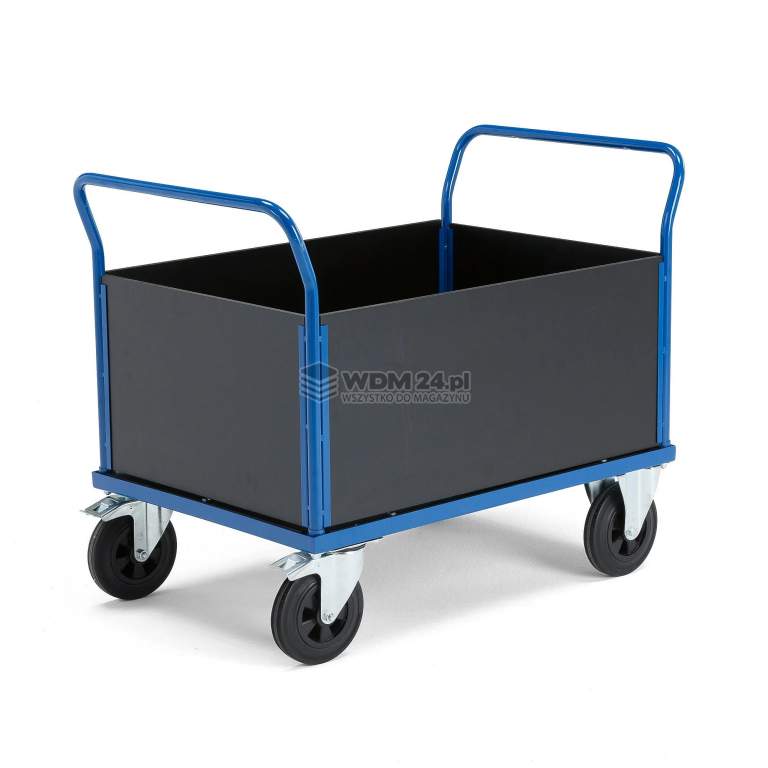 Funkcjonalny wózek platformowy z dwiema praktycznymi ramami z rur stalowych i wysokimi burtami. Burty z płyty MDF są zdejmowane, co zapewnia możliwość transportu długich przedmiotów. Wyposażony w koła z elastycznej gumy, które nie zostawiają śladów. Łożyska kulkowe. Wózek platformowy z trwałych rur stalowych z platformą i wysokimi burtami z MDF w kolorze czarnym. Wózek doskonale nadaje się do transportu w warsztatach i magazynach. Burty łatwo zdjąć, gdy zajdzie potrzeba. Umożliwia to transport dłuższych przedmiotów.