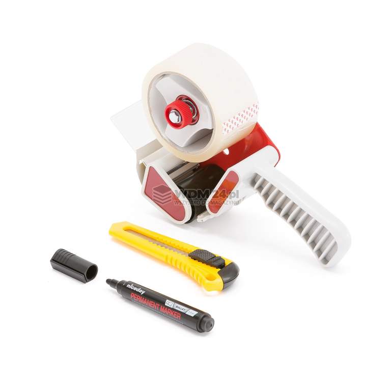 Praktyczny zestaw do pakowania. Zawiera dyspenser, taśmę, nóż oraz marker permanentny. Szukasz kompletnego zestawu odpowiedniego zarówno do pakowania jak i podczas przeprowadzek?Wszechstronny zestaw startowy zawiera wszystko, czego potrzebujesz do pracy.Zestaw zawiera dozownik do taśmy, rolkę taśmy, nóż oraz permamentny marker do łatwego oznaczania pudeł lub paczek.Zestaw podstawowy, spełniający większość potrzeb, użyteczny zarówno w domu i w pracy!